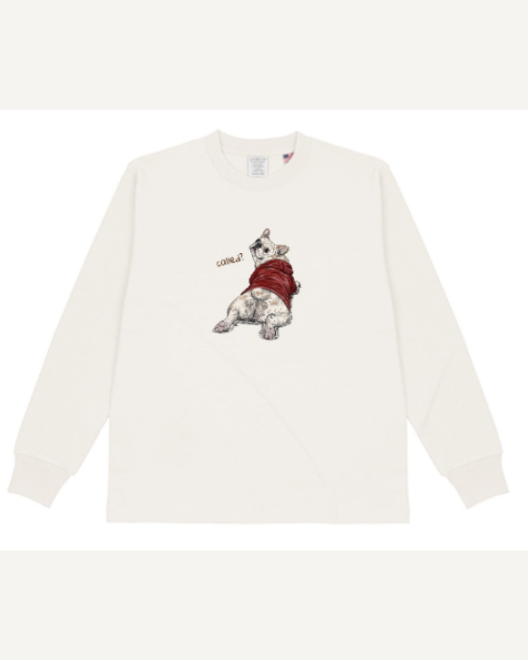 このデザインは、ロンTだけでなく、同じモチーフでスウェットと巾着も展開しています。