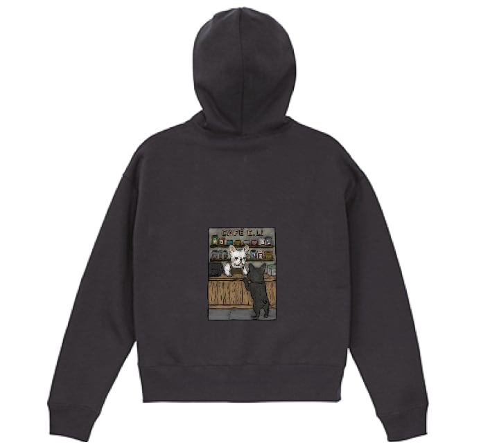 (背面プリント)CAFE ELI /フルジップパーカー/ボックスシルエット/スミ/裏起毛/ユニセックス
