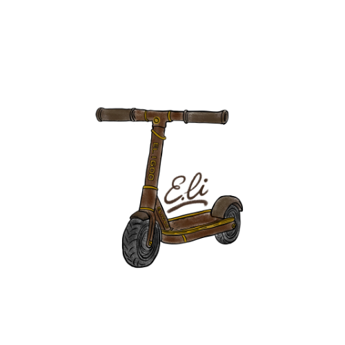 キックボードとE.Liの筆記体ロゴをワンポイントでデザインしました。