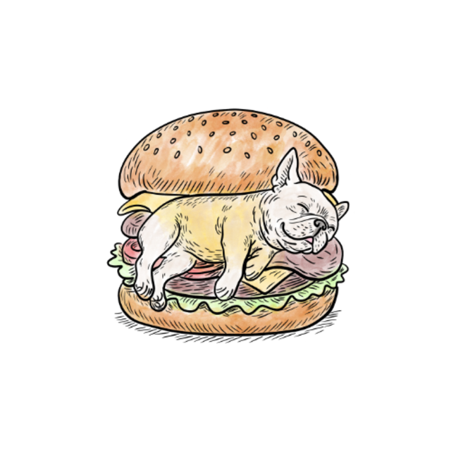 背面には、カウンター越しに向かい合う2匹のフレンチブルドッグを描きました。
