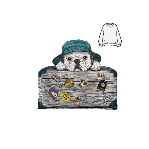 一枚の服の中で、複数のイラストを無理なく楽しめる方法として着目したのが、“ステッカーを貼ったスーツケース”という発想でした。