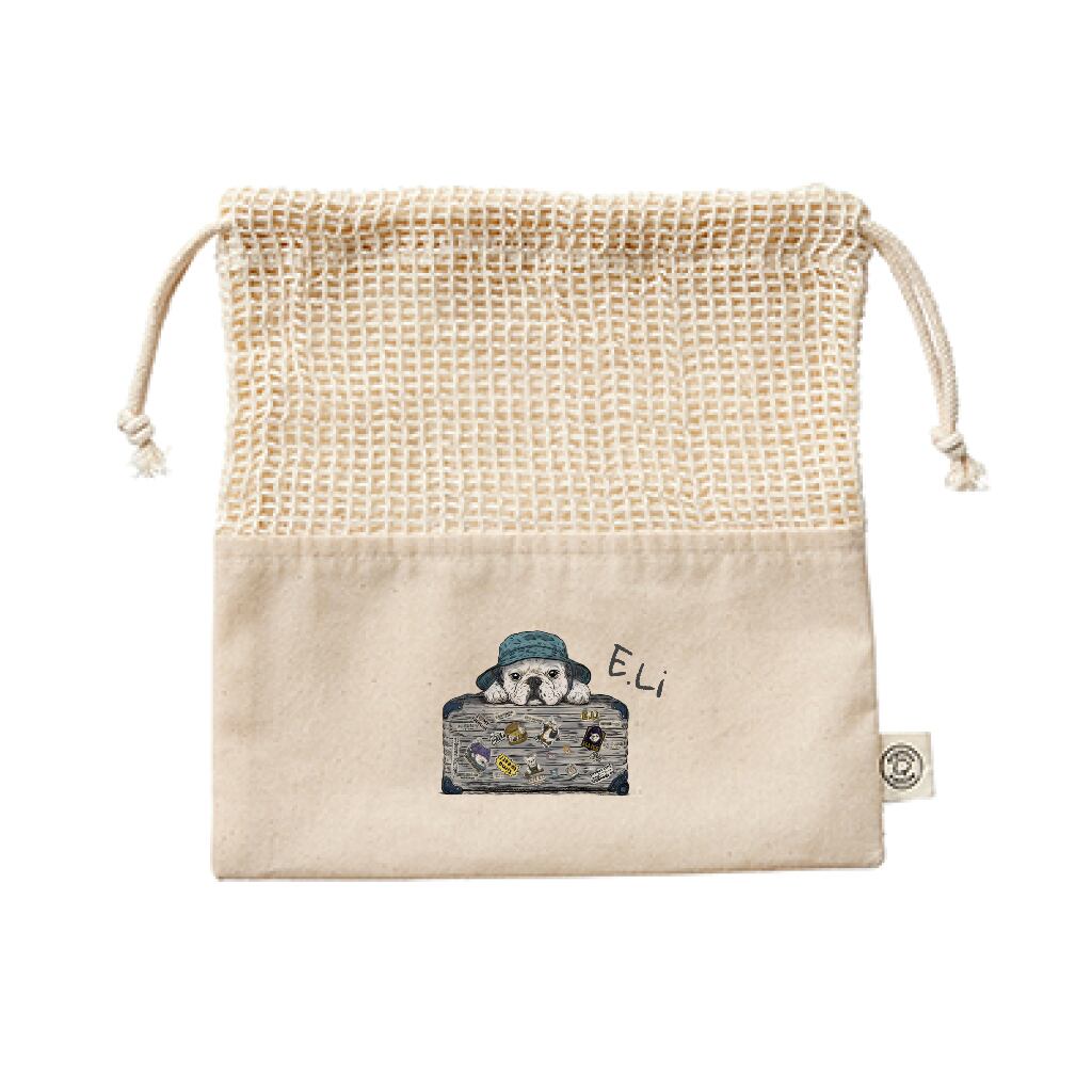E.LiオリジナルのBUHIアートと、やさしい素材感を組み合わせたネット巾着です。
