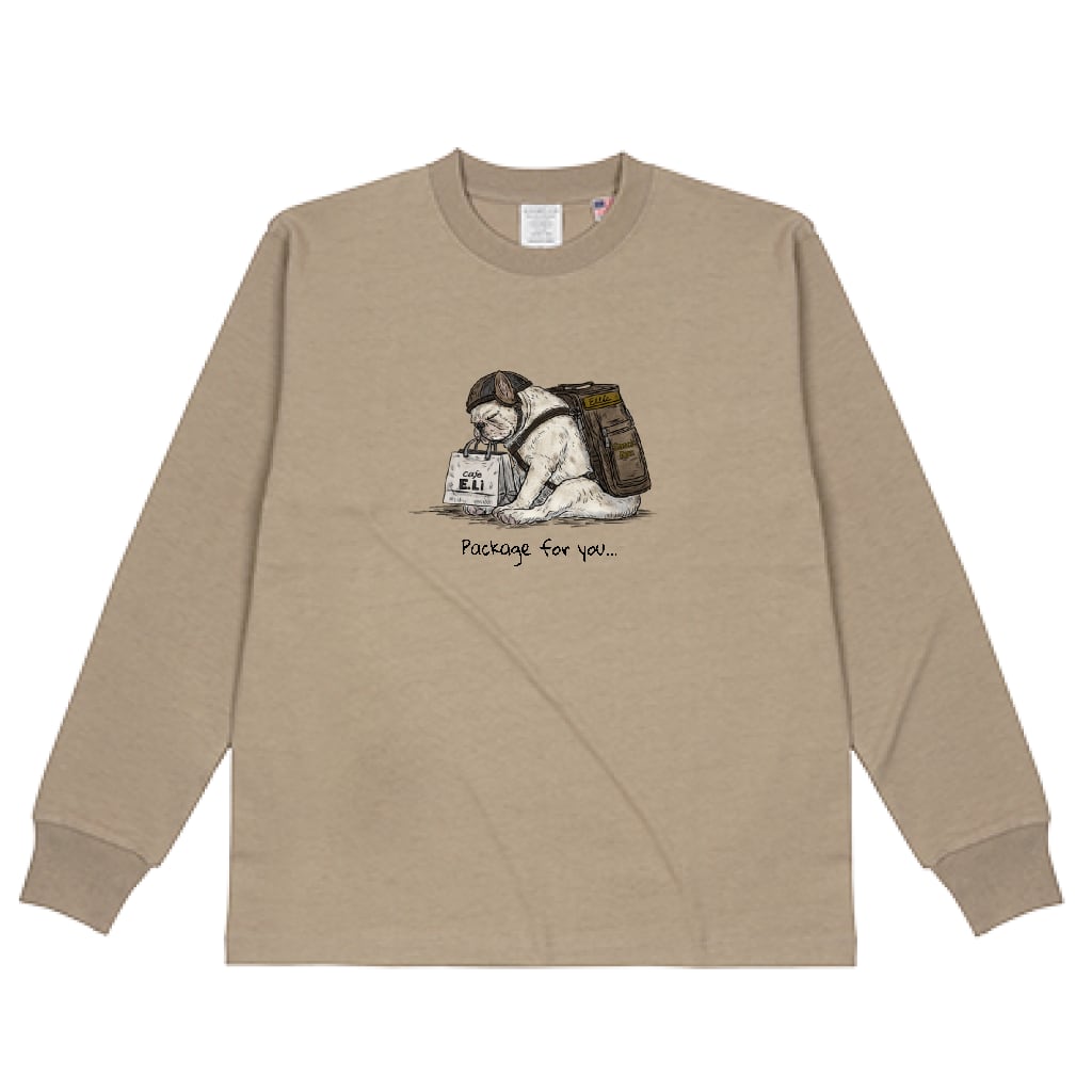 フロントには、配達員風のフレンチブルドッグを描きました。