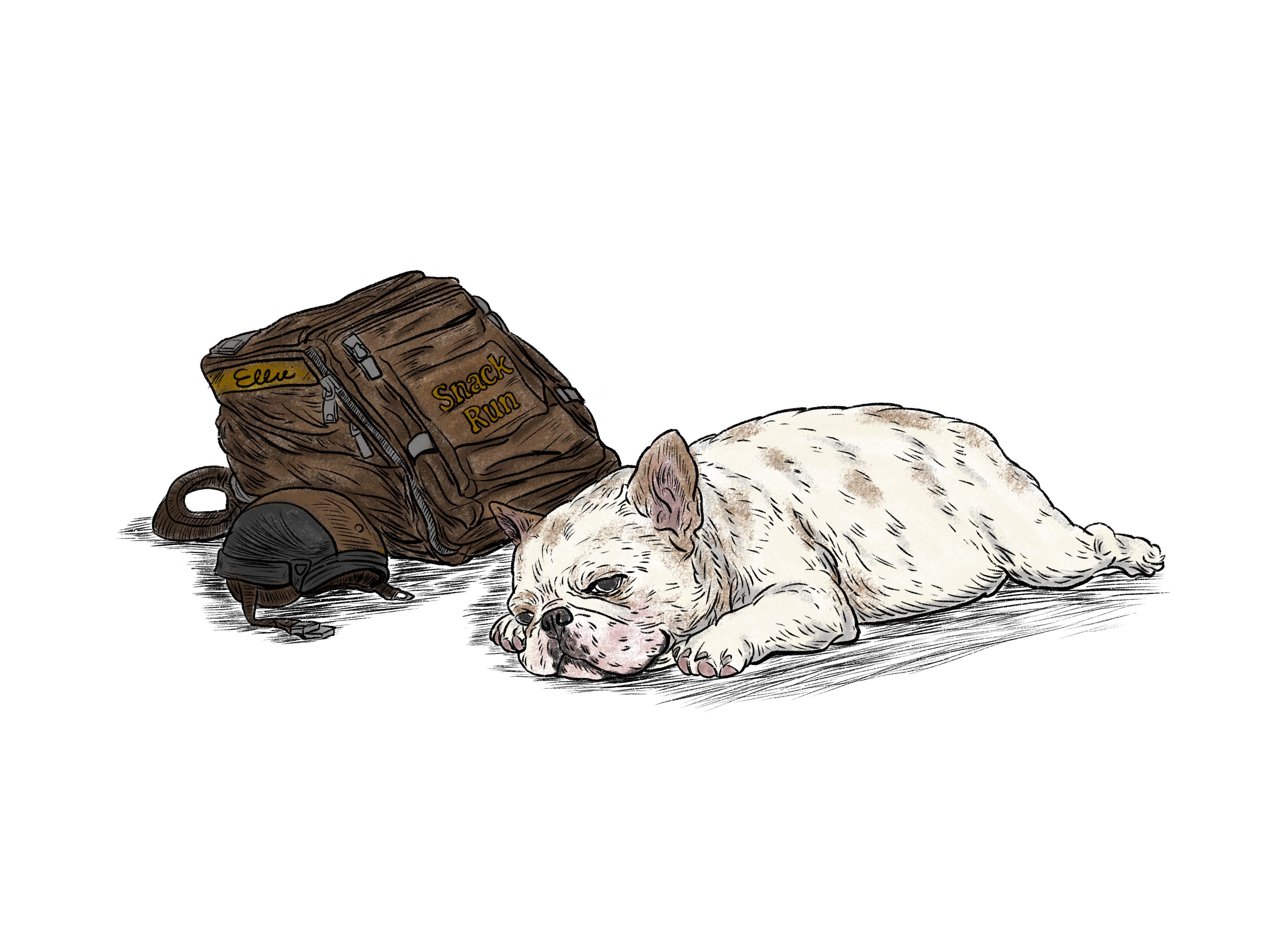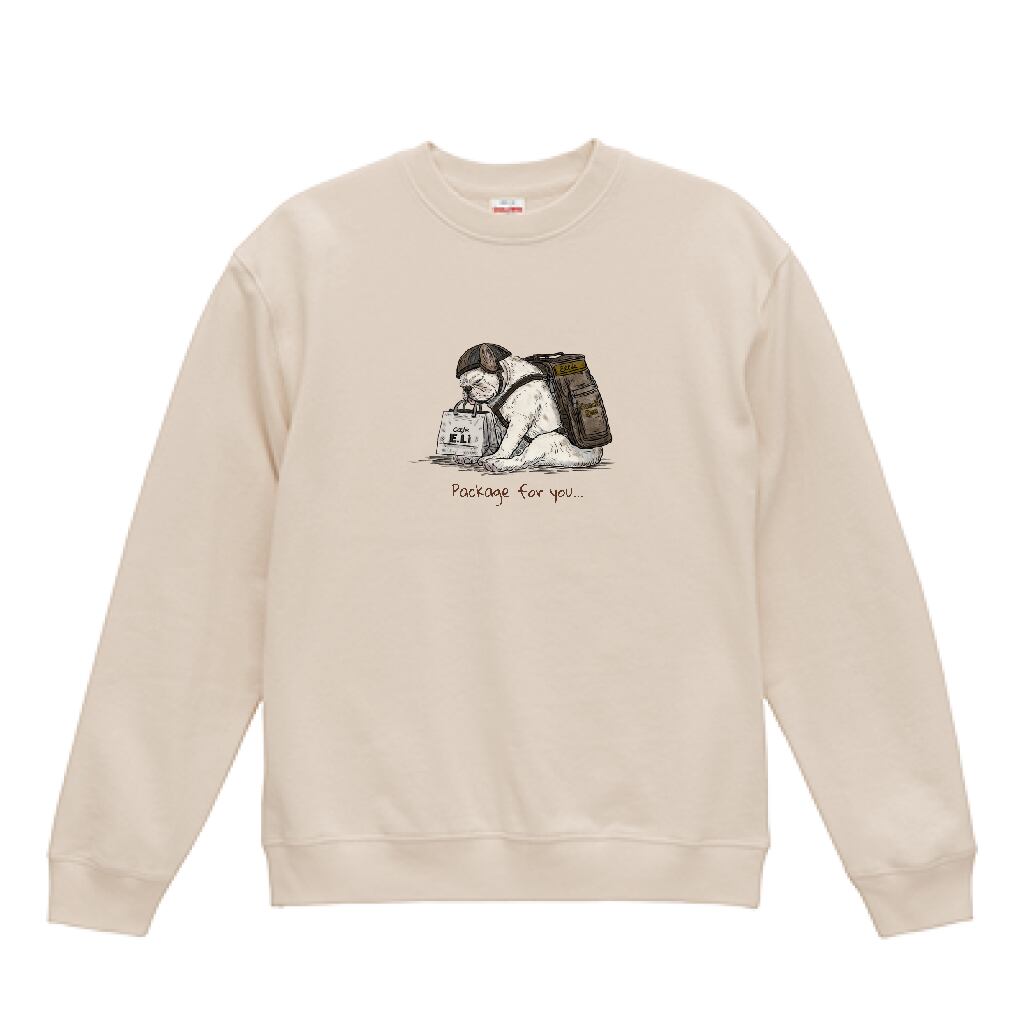 フロントには、配達員風のフレンチブルドッグを描きました。