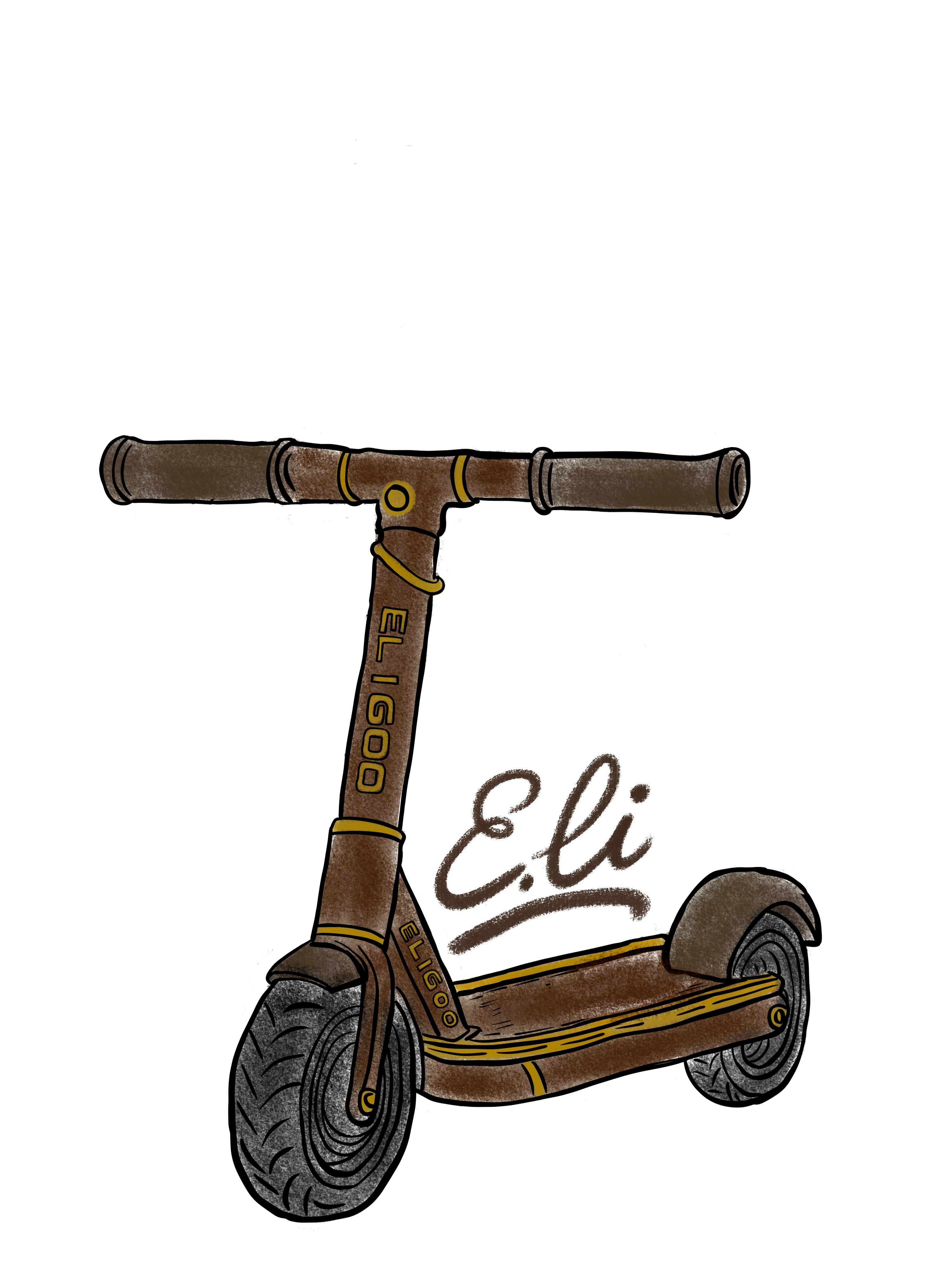 キックボードとE.Liの筆記体ロゴをワンポイントでデザインしました。