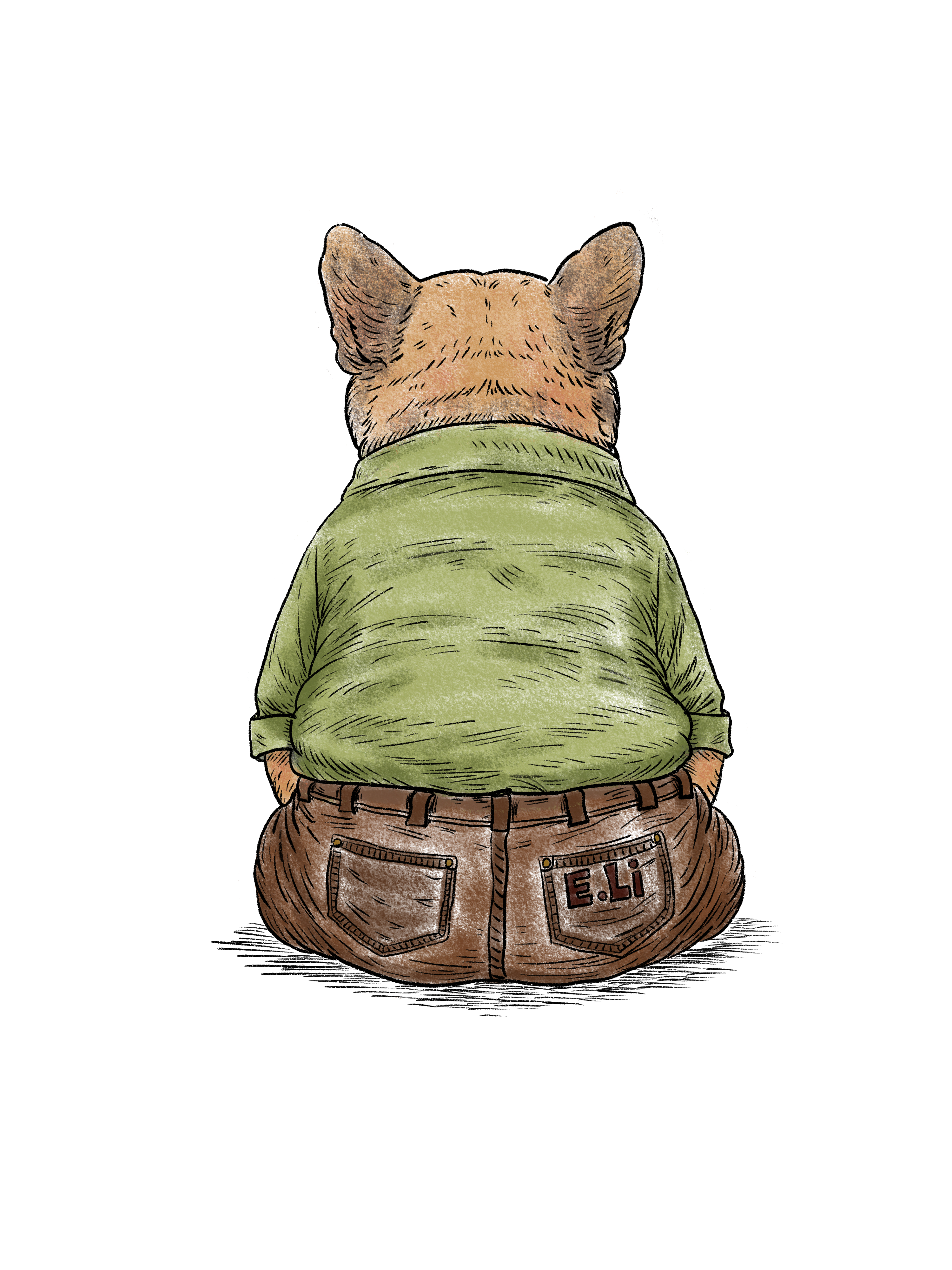 フロントには、愛犬がちょこんと座っている姿をモチーフにしたイラストを配置しました。